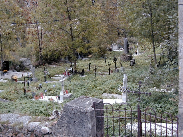 Se encuentra en el interior del cementerio, entre los enterramientos.